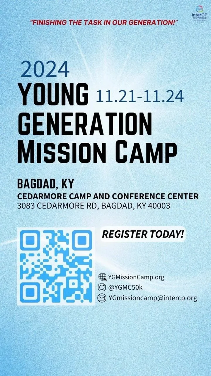 Text reads "Young Generation Mission Camp" in black, bold letters on a white background.
